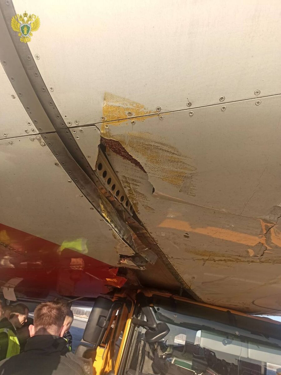 Шутка ли врезаться 40-ка тонному топливозаправщику на скорости, самолет аж развернуло, силовые элементы всмятку: https://s12.stc.yc.kpcdn.net/s ... Нехило рихтанул: https://s14.stc.yc.kpcdn.net/s ...