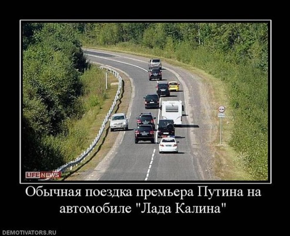 Советую посмотреть на эпохальный автопробег, видеролик:http://news.drom.ru/14758.html А это оттуда же цитирую:Вчера благодаря читинским джиперам из клуба Диверсант появилась видеозапись, на которой хорошо видно, что Путин "едет" на трех Калинах: первую ведет сам в окружении автомобилей охраны, вторая едет сразу за кортежем, третью везут в хвосте на эвакуаторе. Все три Калины совершенно одинаковые. Интересно и другое: среди машин сопровождения премьера не было замечено отечественных. Калину Путина окружают несколько Toyota Land Cruiser 200, в голове колонны едет Toyota Land Cruiser 100, также автомобиль сопровождает микроавтобус Volkswagen Transporter. Автомобили ГИБДД — сплошь Toyota Corolla. Красноречивая поддержка отечественного производителя.конец цитаты