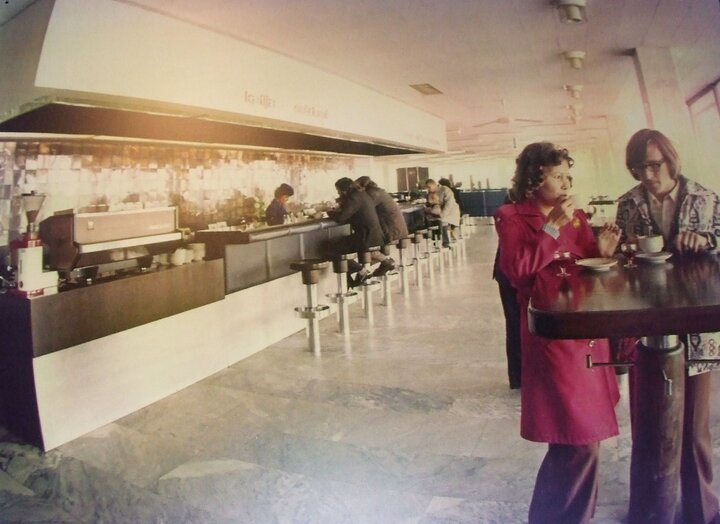 Показанное фото 1978 года, называется оно «В баре Рижского международного аэропорта, Латвийская ССР, 1978 год», то есть до описанного вами события в 80-х годах.