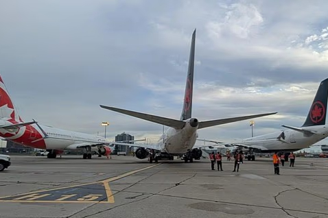 Зачем обязательно "на крыльях"? Встречающий техник, контролирующий процесс заруливания на стоянку, вполне способен был бы узреть, что буксируемый борт является "невпихуемым" на это место.